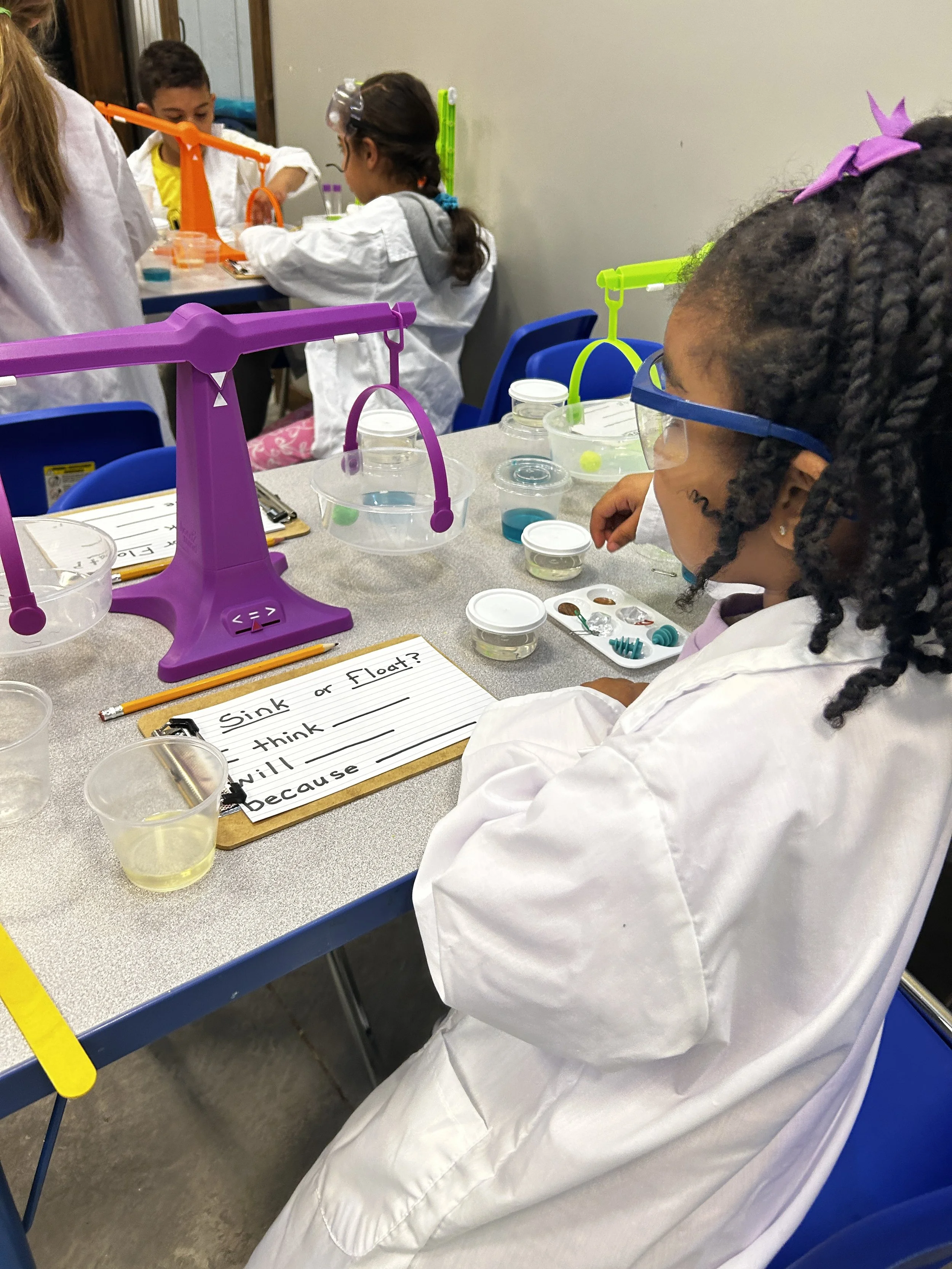 Led by Ms. Kizzle, the lab blends foundational science concepts with playful investigation. Students explore topics across chemistry, biology, physics, earth science, and engineering, all through age-appropriate experiments that spark confidence and independent thinking.